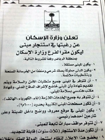 كشف المتحدث الرسمي لوزارة الإسكان محمد الزميع السبب وراء إعلان وزارته اليوم البحث عن مبنى للإيجار في العاصمة الرياض.