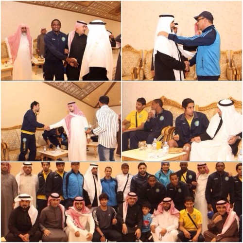 واحتفى الشيخ الأحمد ببعثة النادي، أثناء رحلة سفرها إلى الكويت براً.