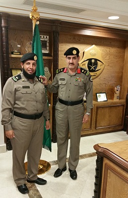 قلد اللواء مسعود بن فيصل العدواني مدير شرطة محافظة جدة ، الرائد علي بن عيد الصاعدي أحد منسوبي شعبة تقنية المعلومات بالشرطة رتبته الجديدة بعد صدور الأمر الملكي الكريم بترقيته .