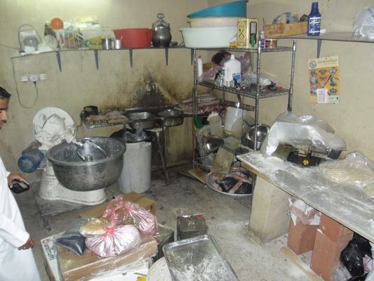 ورصد المراقبون وجود العديد من الملاحظات والمخالفات المتنوعة، والتي شملت مخالفات في توفير الاشتراطات الصحية للمباني والتجهيزات وعرض المواد الغذائية مجهولة المصدر ومنتهية الصلاحية ووجود حشرات وقوارض وتدني مستوى النظافة الشخصية للعمالة إضافة إلى عدم تجديد بعض رخص المحال، وأسفرت حملات يوم أمس في نطاق بلديتي الغزة والمسفلة عن مصادرة وإتلاف (2200 كجم) من المواد الغذائية مجهولة المصدر ومخزنة بطرق سيئة ومعادة التجميد ومنتهية الصلاحية، كما تم إتلاف (397) قطعة من القدور والأواني والمعدات غير الصالحة للاستخدام و(632) من المعلبات، وفحص (75) عينة غذائية.