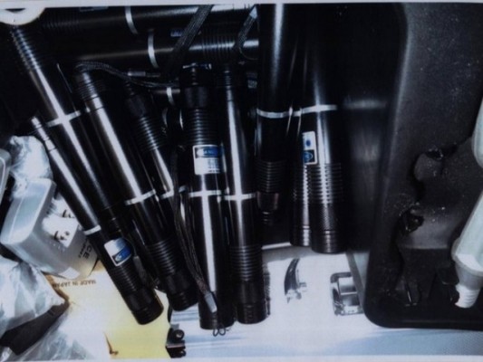 وأوضح مدير عام جمرك البطحاء “عبدالرحمن المحنّا” أنه قَدِمت للجمرك مركبةٌ من نوع “خصوصي” وفي أثناء إنهاء إجراءات الكشف والمعاينة المعتادة عُثر على (68) من أجهزة الليزر وجهاز لاسلكي كانت مخبأة داخل المكان المخصص للإطار الاحتياطي وتمت تغطيتها بمادة عازلة.