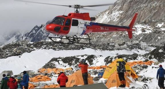 ونقلت 3 طائرات مروحية 170 متسلقاً من المخيم رقم واحد إلى مخيم سفح الجبل الاثنين.