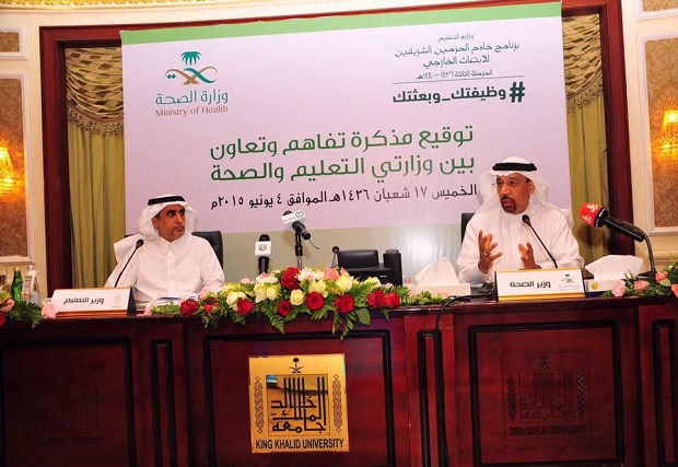 حيث وقع من طرف وزارة التعليم الدكتور عزام الدخيل وعن وزارة الصحة المهندس خالد الفالح وزير الصحة .