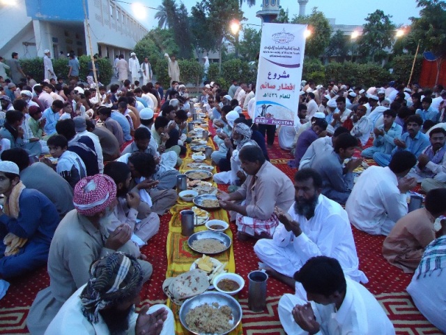 نفذ مكتب (النـدوة العالمية للشباب الإسلامي) في باكستان مشروع إفطار الصائم مؤخرا لـ 1200 صائم في عدد من المناطق والجهات منها 1- إفطار (معهد الشريعة والصناعة) بمدينة (كوت أودو بنجاب) وحضره أكثر من 800 شخص من طلبة العلم وعامة الناس وبعض المشايخ وأعيان المنطقـة، 2- إفطار (مسجد عبد الله الشداد الثقفي وحرمه) بمنطقة (باجور) ، وحضره أكثر من 300 صائم من عامة الناس وبعض المشايخ وأعيان المنطقـة، 3- إفطار (معهد الصم والبكم) بمدينة (سركودها بنجاب) حضره حوالي 100 من النساء والأطفال ذوي الحاجات الخاصة.