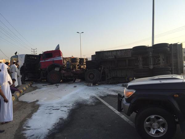 أصيب 22 شخصاً بإصابات متفاوتة، صباح اليوم الأحد، في حادث تصادم بين حافلة تُقِلّ عمالاً وشاحنة كبيرة على تقاطع الحسينية ملكان بمكة الكرمة.