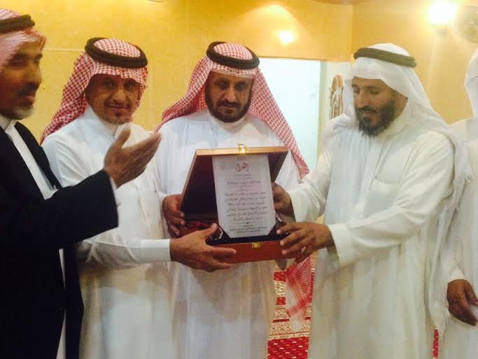 واشتمل الحفل على العديد من الكلمات وتوزيع الهدايا من زملائه .