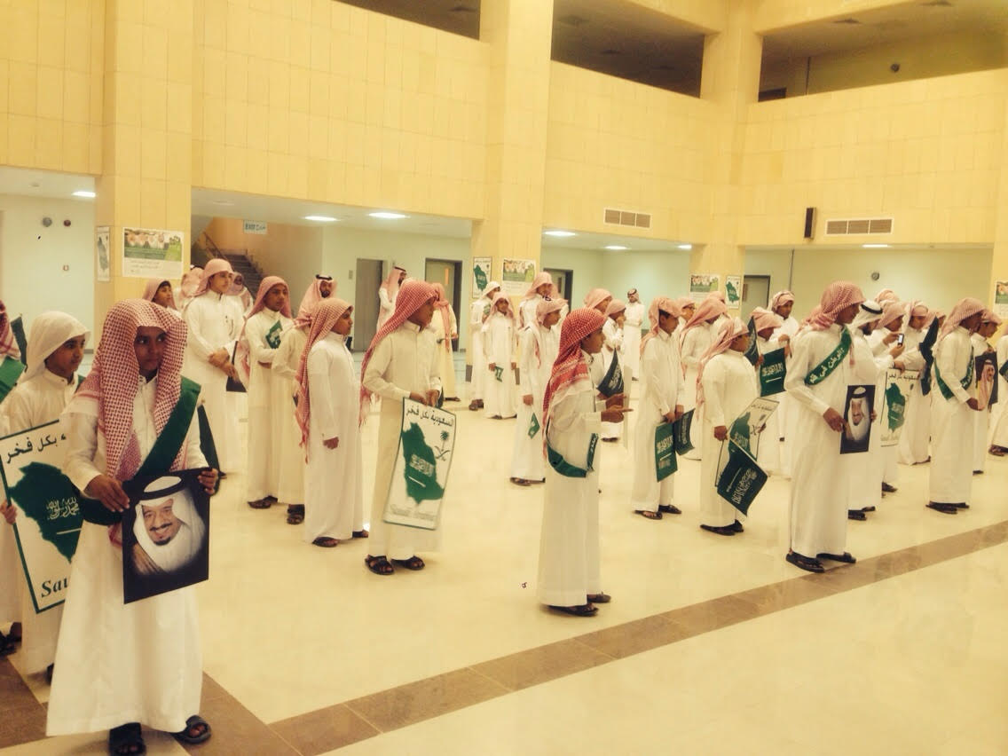 وتخلل الحفلَ عددٌ من المشاركات الطلابية، والتي تمحورت حول هذه المناسبة السعيدة، وقد توشح الطلاب بالأوشحة الخضراء، والتي تحمل عبارات حب ووفاء للوطن، وحمل الطلاب صورًا لقائد هذا الوطن خادم الحرمين الشريفين الملك سلمان بن عبدالعزيز وصور نائبَيْه- حفظهم الله.