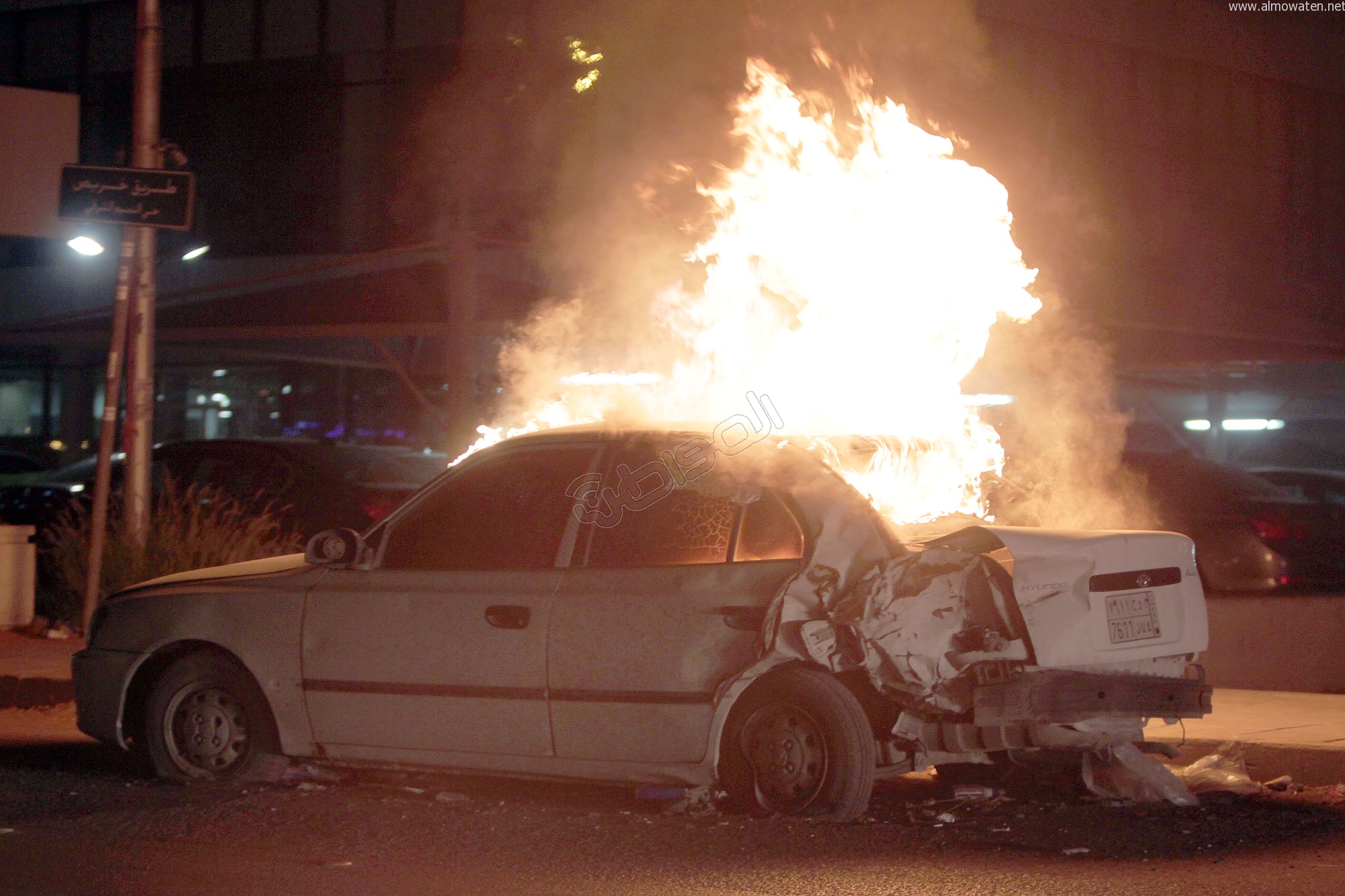 احترقت- منذ قليل- سيارة متوقفة في طريق خريص بمنطقة الرياض.