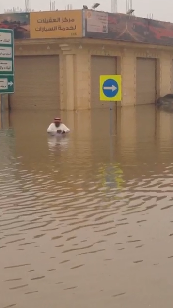 تداولت مواقع التواصل الاجتماعي مقطع فيديو، لمُسن وهو يقطع المياه التي أغرقت طريق الخبيب ببريدة.