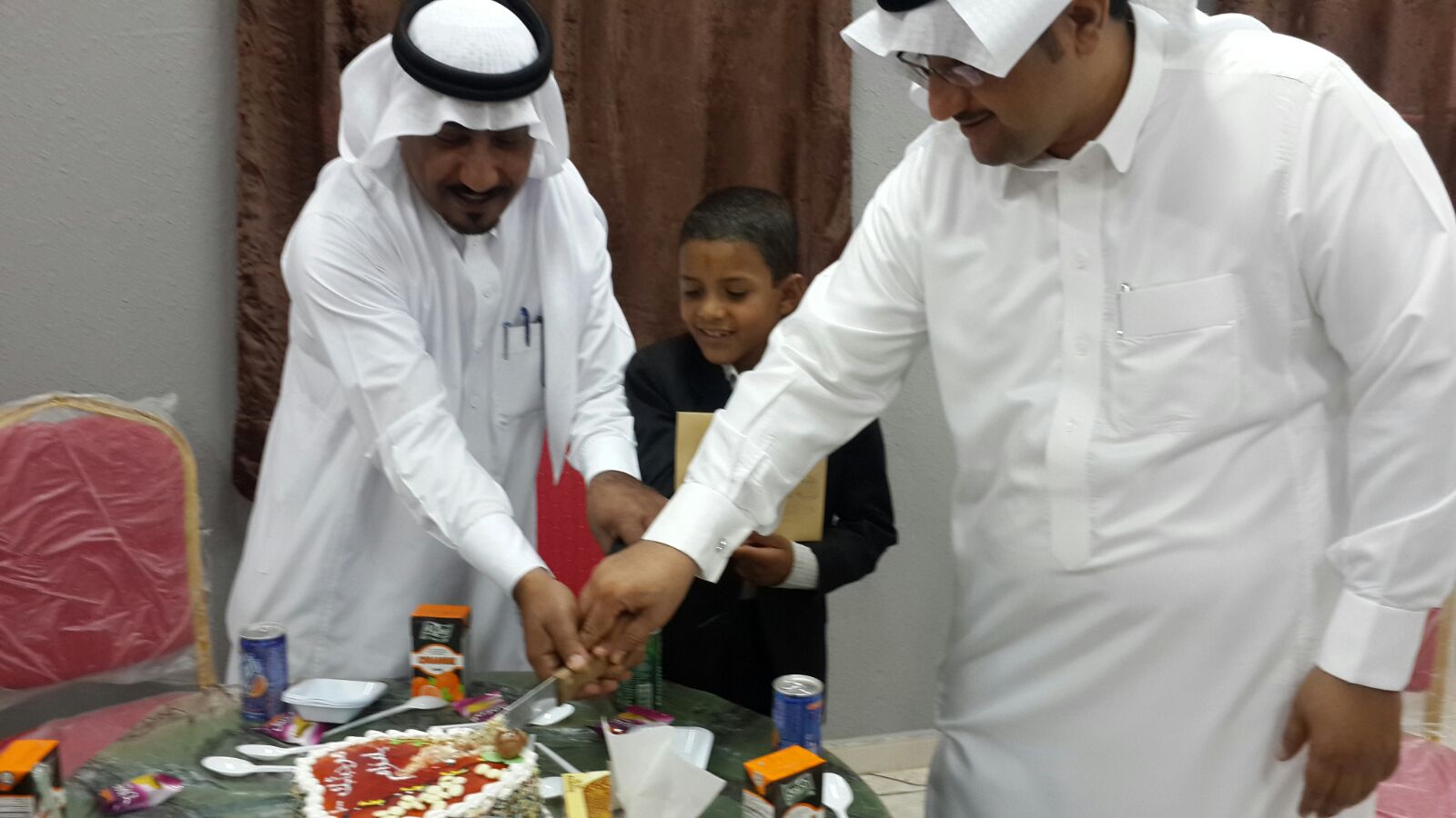 عَقِب ذلك قُدّمت له الهدايا من زملائه الطلاب، ومبلغ مالي من المعلمين، ثم تناول الجميع الحلوى والمرطبات احتفاءً بالطالب؛ بحضور المشرف التربوي بمكتب البرك، عبداﻹله عبدالعزيز الفلاحي.
