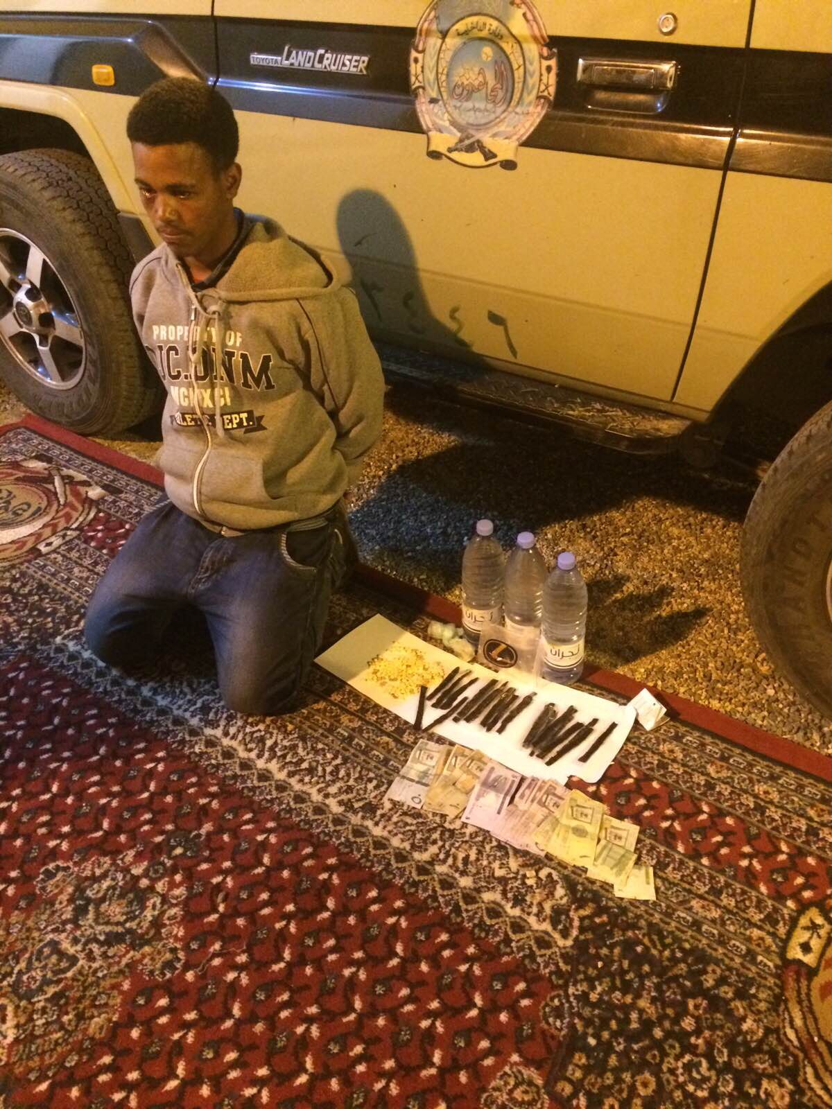 تمكنت دوريات طوارئ المجاهدين بعسير من القبض على مروج مخدرات ومسكرات مع أحد مجهولي الهوية من الجنسية الإفريقية، وعُثر بحوزته على عدد من حبوب الكبتاجون المحظور والحشيش المخدر وقوارير مملوءة بمادة المسكر، بالإضافة إلى مبلغ مالي.