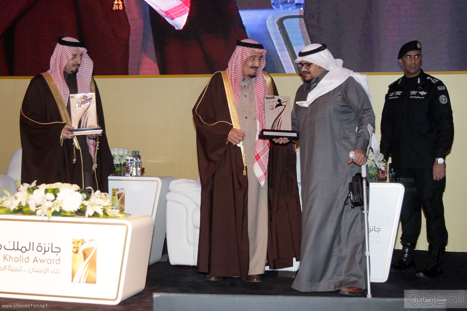 ألقى الأمير فيصل بن خالد بن عبدالعزيز، أمير منطقة عسير رئيس مجلس أمناء مؤسسة الملك خالد الخيرية رئيس هيئة جائزة الملك خالد، كلمة في حضور خادم الحرمين الشريفين الملك سلمان بن عبدالعزيز آل سعود، خلال حفل تكريم الفائزين بجائزة الملك خالد في دورتها الخامسة وبفروعها الثلاثة “التميّز للمنظمات غير الربحية” و”شركاء التنمية” و”التنافسية المسؤولة”.. جاء فيها: