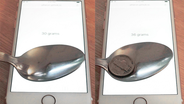 ولقياس وزن أي شيء يُمكن فتح مُتصفح سفاري داخل الهاتف والتوجه إلى pltarun.github.io/scale ثم وضع ذاكرة فلاش على الشاشة على سبيل المثال لا الحصر ليظهر وزنها فوراً.
