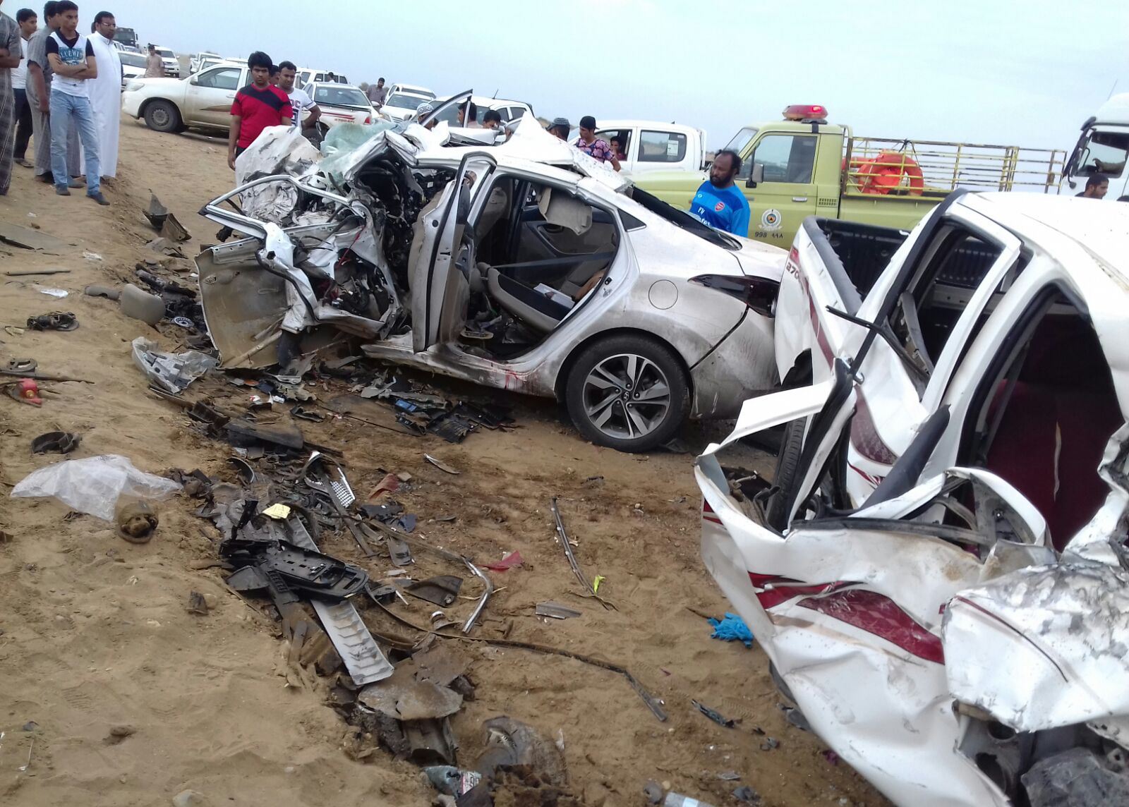 توفي 6 شبان، صباح اليوم الأربعاء، في حادث مروع لتصادم مركبتين من نوع هايلوكس والنترا “وجهاً لوجه”، وذلك على طريق قرية منشية بمحافظة الدرب، شمال منطقة جازان.