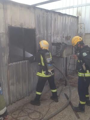 نشب حريق في مجلس خارجي مبني من الزنك بمنزل المواطن عوض العنزي في حي ( مخطط ج ) بمحافظة دومة الجندل.