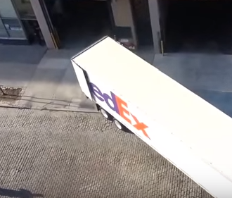 شاهد.. سائق يوقف شاحنة داخل مبنى باحترافية