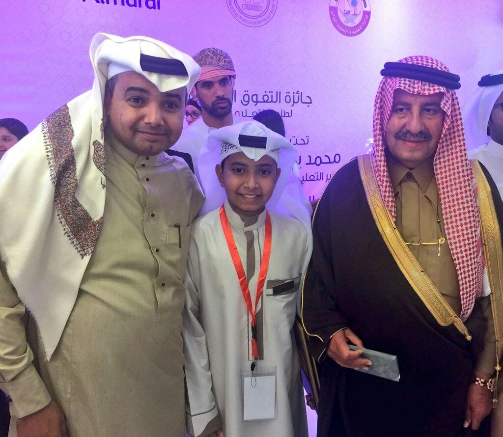 توّج صاحب السمو الأمير سلطان بن محمد بن سعود الكبير رئيس مجلس إدارة شركة المراعي، بحضور معالي وزير التعليم بدولة قطر الدكتور محمد بن عبدالواحد الحمادي، الطالب محمد بن أحمد باحارث، الذي يدرس بالصف السادس الابتدائي بمدرسة الحسن بن علي الابتدائية بالليث، بجائزة التفوق الدراسي لطلاب التعليم العام على مستوى دول الخليج العربي، في دورتها العاشرة.