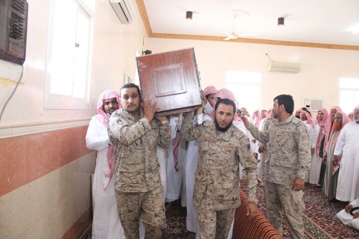 من جانبها عبَّرت أسرة الشهيد وأقاربه عن فخرهم واعتزازهم باستشهاد ابنهم في ميدان الشرف وفي سبيل أداء واجبه، مجددين العهد والولاء والسمع والطاعة للقيادة الرشيدة وبذل كل ما يضمن حفظ الوطن والدفاع عن حدوده وترابه الطاهر، وتم مواراة جثمانه الثرى في مقبرة ” مركز حميد العلايا” مسقط رأسه التابعة لمحافظة محايل وسط جموع كبيرة اكتظت بهم المقبرة من زملاء الشهيد، يتقدمهم النقيب متعب ناصر البقمي من منسوبي اللواء العاشر بالسرية الثانية وعددٌ من المواطنين وأهالي مركز حميد العلايا وأقارب الشهيد.