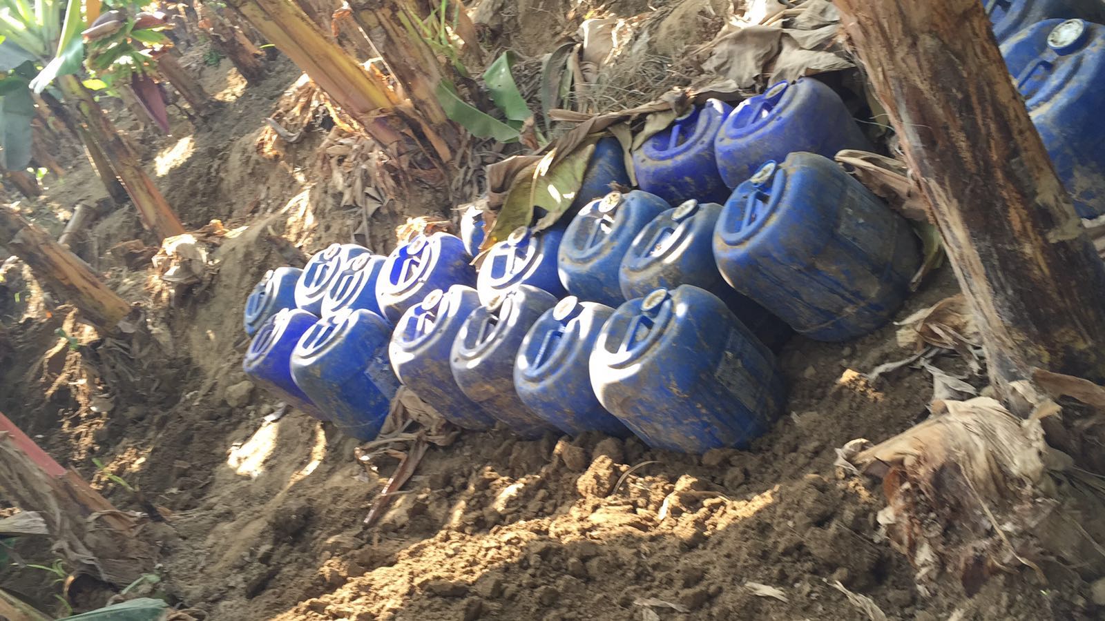 وأوضح الناطق اﻹعلامي لشرطة منطقة جازان المقدم محمد الحربي، أنه في إطار الجهود اﻷمنية ضد المتسللين ومخالفي نظام الإقامة والعمل ومتابعة مروجي المسكرات تمكن فريق من شعبة التحريات بشرطة محافظة بيش بمداهمة موقع سري داخل مزرعة، عثر فيها على 134 جركل سعة 25 لتراً تحتوي على مادة العرق المسكر مع أدوات التصنيع مع القبض على عمال المزرعة.