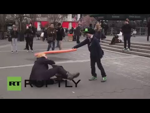 وأعطى الفنان أهالي نيويورك إمكانيةَ تصوير سيلفي معه مقابل دولارين أو فرصة ضربه بعصا بسعر 5 دولارات. وأضاف شيبارد أنه يحلم أن يشارك دونالد ترامب الحقيقي في هذه الفعالية.