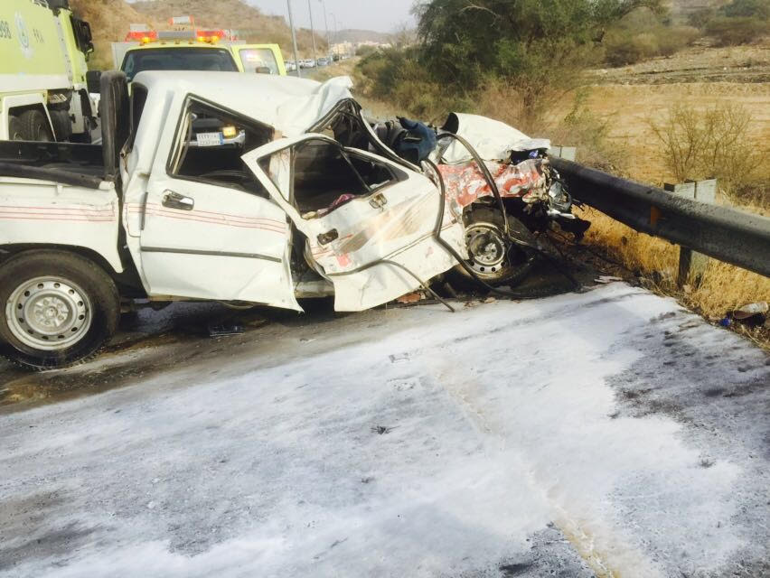 وأضاف الغامدي “عند الوصول إلى الموقع وجد الحادث عبارة عن تصادم 3 مركبات “هايلوكس – هونداي – دينا” وتم مباشرة الحادث على الفور من قِبَل أفراد رجال الدفاع المدني حيث تم إخراجُ المحتجزين وتأمين موقع الحادث، وقد نتج عن الحادث وفاة قائد الهايلوكس وزوجته واحتجاز شخص داخل الدينا؛ كانت إصابته متوسطة، وتم إخراجه من قِبَل الدفاع المدني، ونُقِل المصابون عن طريق إسعاف الهلال الأحمر والوفيات عن طريق إسعاف الدفاع المدني”.