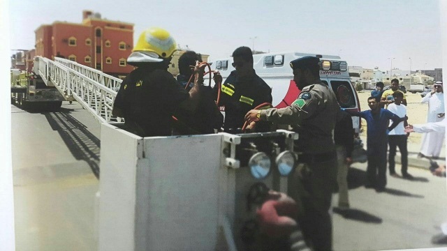 وأضاف الدوسري “تم إنزاله من قبل فرقة الإنقاذ في غضون عشر دقائق عن طريق السلالم”.