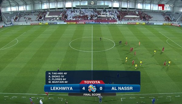 خسر فريق النصر السعودي من نظيره لخويا القطري بأربعة أهداف دون رد، اليوم، ضمن الجولة الرابعة من المجموعة الثانية لمسابقة دوري أبطال آسيا لكرة القدم.