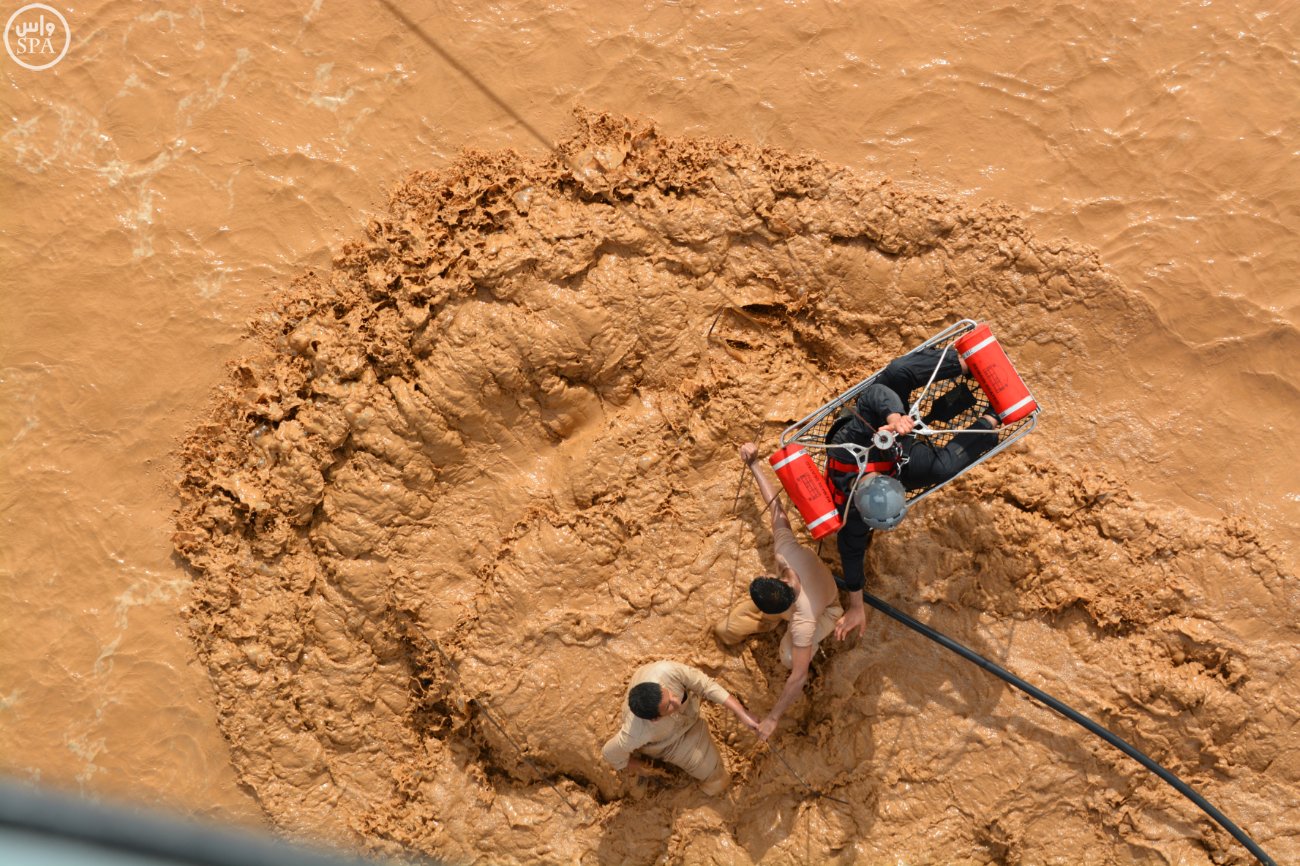 وذكرت القيادة العامة- اليوم- أن طيران الأمن تمكن من إنقاذ ثلاثة مواطنين ومقيم من الجنسية الهندية بعد أن احتجزوا وجرفتهم السيول في وادي الخرمة بالطائف.