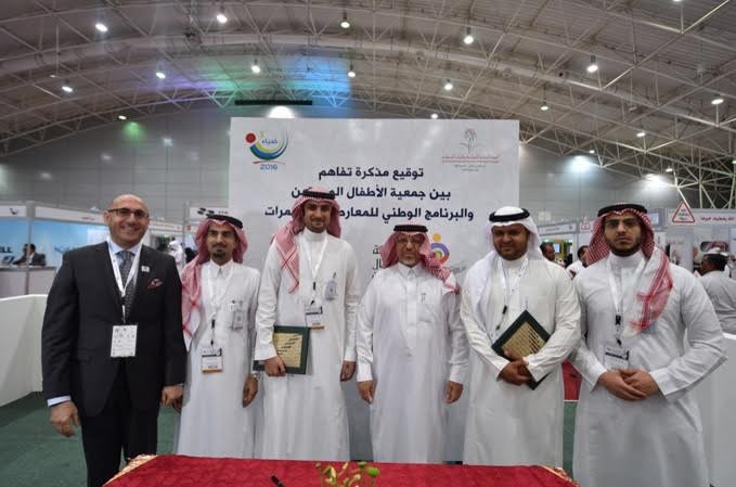 وعلى هامش المعرض تم توقيع اتفاقية تعاون مشترك بين البرنامج الوطني للمعارض والمؤتمرات، يمثلها المهندس طارق العيسى المدير التنفيذي، وبين جمعية الأطفال المعوقين، يمثلها عوض الغامدي الأمين العام للجمعية.