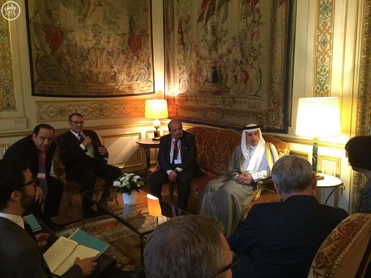 وعقب الاجتماع الوزاري أدلى وزير الخارجية بتصريحات لوسائل الإعلام، أكد خلالها التزام المملكة بدعم المعارضة السورية والأشقاء السوريين؛ حتى ينالوا حقوقهم المشروعة في بناء دولة مستقرة لا تشمل بشار الأسد.بير، مساء أمس الاثنين في باريس، نظيره الألماني فرانك فالتر شتاينماير، والممثلة العليا للسياسة الخارجية والأمن في الاتحاد الأوروبي فريدريكا موغريني، حيث اجتمع بكل منهما على حدة، وذلك على هامش الاجتماع الوزاري لدول “النواة الصلبة” الداعمة للمعارضة السورية.
