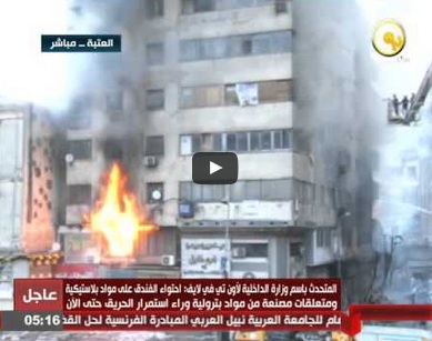وقد هرعت سيارات الإطفاء والإسعاف لمكان الحادث، إلا أن صعوبة وصولها إليه على ما يبدو هي ما أخرت إخماد الحريق بالرغم من وجود مقر للمطافئ في ميدان العتبة على بعد أمتار من الفندق.