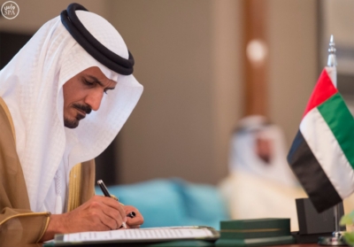 وقعت المملكة العربية السعودية، ودولة الإمارات العربية المتحدة بحضور خادم الحرمين الشريفين الملك سلمان بن عبدالعزيز آل سعود – حفظه الله – وصاحب السمو الشيخ محمد بن زايد آل نهيان ولي عهد أبوظبي نائب القائد الأعلى للقوات المسلحة بدولة الإمارات العربية المتحدة، في قصر السلام اليوم، على محضر انشاء مجلس التنسيق السعودي الإماراتي .