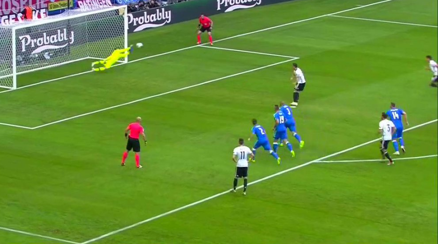 وحصلت ألمانيا على ركلة جزاء في الدقيقة 12 من أحداث الشوط الأول، بعدما دفع سكرتل، الألماني جوميز داخل منطقة الجزاء، وتصدى أوزيل لتسديدها، ولكن الحارس تألق وأبعدها خارج المرمى.