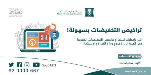 وقالت الوزارة عبر حسابها الرسمي على تويتر : الآن إصدار تراخيص التخفيضات إلكترونياً وبسهولة.. وقبول الطلبات يتم بشكل فوري.