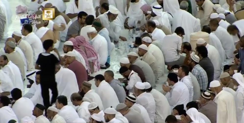 نشرت قناة الإخبارية، مجموعة من الصور لضيوف الرحمن، يتناولون إفطارهم الأول بالحرم المكي، في أول أيام شهر رمضان لهذا العام.