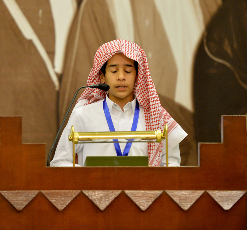 إثر ذلك، قام الطالب إبراهيم العويد بتلاوة آيات من القرآن الكريم، ومن ثم ألقيت كلمة أولياء الأمور، ألقاها إبراهيم الهذال ولي أمر الطالبة لجين إبراهيم الهذال، ذكر فيها أهمية الانشغال بتعلم القرآن الكريم وحفظه، وأن هذا من أفضل الأعمال، وأن من فضل الله عز وجل على هذه البلاد حرص الدولة على تعليم القرآن الكريم وحفظه، ومن ثم شكر راعي الجائزة الأمير فيصل بن بندر على العناية والإهتمام بكتاب الله، وأن يجعل ذلك في ميزان أعماله.