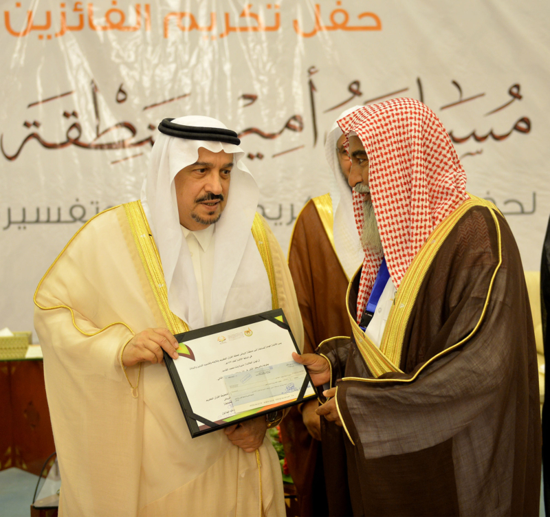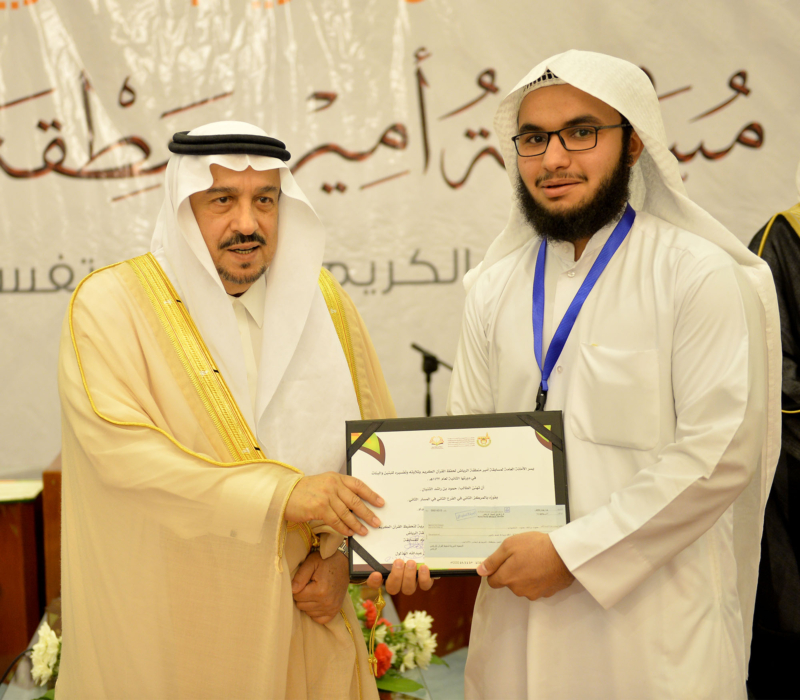 كرم صاحب السمو الملكي الأمير فيصل بن بندر بن عبدالعزيز، أمير منطقة الرياض، الرئيس الفخري للجمعية الخيرية لتحفيظ القرآن الكريم بقصر الحكم اليوم، الفائزين في مسابقة سموه لحفظ القرآن الكريم، وتلاوته، وتفسيره للبنين والبنات، بمنطقة الرياض، في دورتها الثانية، والذين بلغ عددهم (353) طالباً وطالبةً من خلال (31) جمعيةً موزعة على محافظات منطقة الرياض، التي كان من أبرزها حفظ امرأة عمرها (80) عاماً لا تقرأ ولا تكتب؛ القرآن الكريم، وحفظ طفلة لايتجاوز عمرها (9) سنوات القرآن الكريم.