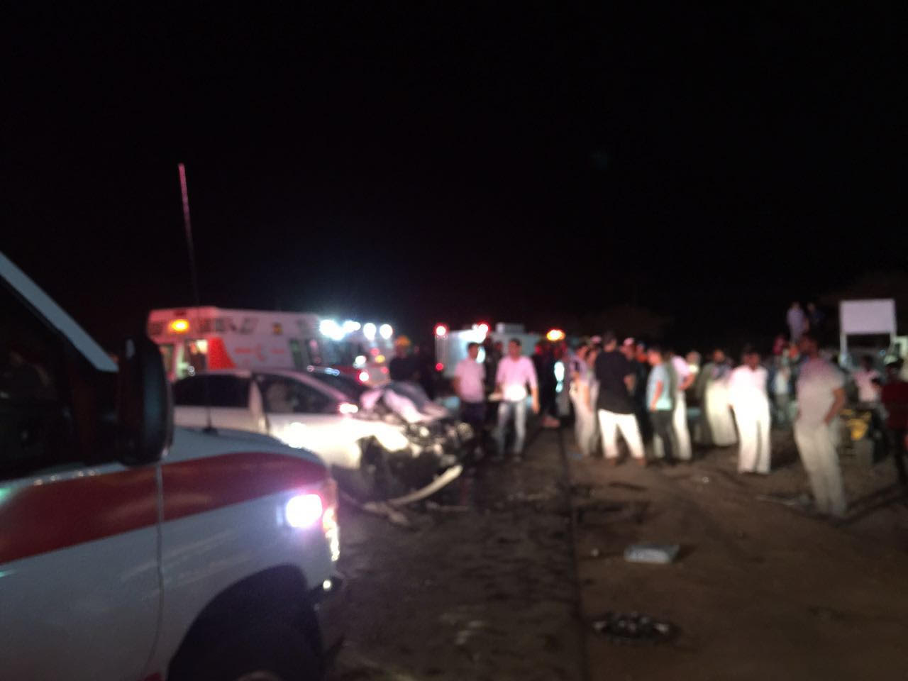 وتابع السهلي أن الفرق تلقت عند الساعة ٠٢:٣٦ بلاغاً يفيد بوقوع حادث على طريق الهجرة مفرق الهندية ، وعند وصول الفرق تبين وجود وفاة وإصابتين خطيرتين، وبين أن عدة فرق إسعافية أرضية باشرت الحادث.