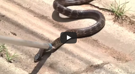 ويبين الفيديو لحظات الرعب التي عاشها المواطن حين اكتشف وجود هذا الثعبان الخطير في منزله .
