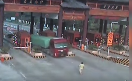 ويوضح الفيديو نزول قائد الشاحنة عند محطة تحصيل الرسوم بإحدى المقاطعات الصينية دون أن يرفع فرامل اليد حيث تراجعت الشاحنة بسرعة فيما فشل قائدها في ملاحقتها.