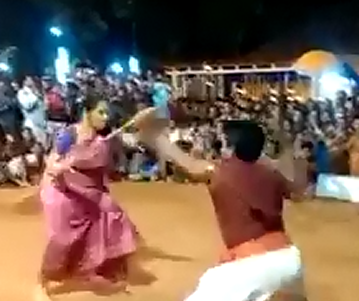 وبين الفيديو العجوز “ميناكشي” وهي ترتدي الساري، وتناور منافسها بسرعة باستخدام عصا فقط، لتثبت مهاراتها وخفة حركاتها، حيث قضت ميناكشي ما يقرب من 68 سنة في تعليم فن عسكري هندي قديم معروف باسم “كالاريباياتو”.