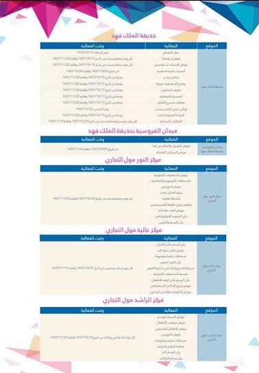 وبيّن المركز الإعلامي للمهرجان، في بيان له، بأن الفعاليات المقامة في المراكز التجارية خلال أيام الأسبوع؛ تتضمن عروض ألعاب خفة اليد، وركن التصوير الفوتوغرافي، وركن الرسم والتلوين، والرسم على الجدران، وركن التاجر الصغير، ومسيرة الشخصيات الكرتونية، وعروض فريق الدنادن الاستعراضي، وعروض الإكروبات والتحدي البشري، فضلاً عن المسابقات الترفيهية والثقافية وعروض الأطفال المخترعين، وعروض السيرك الهندي.