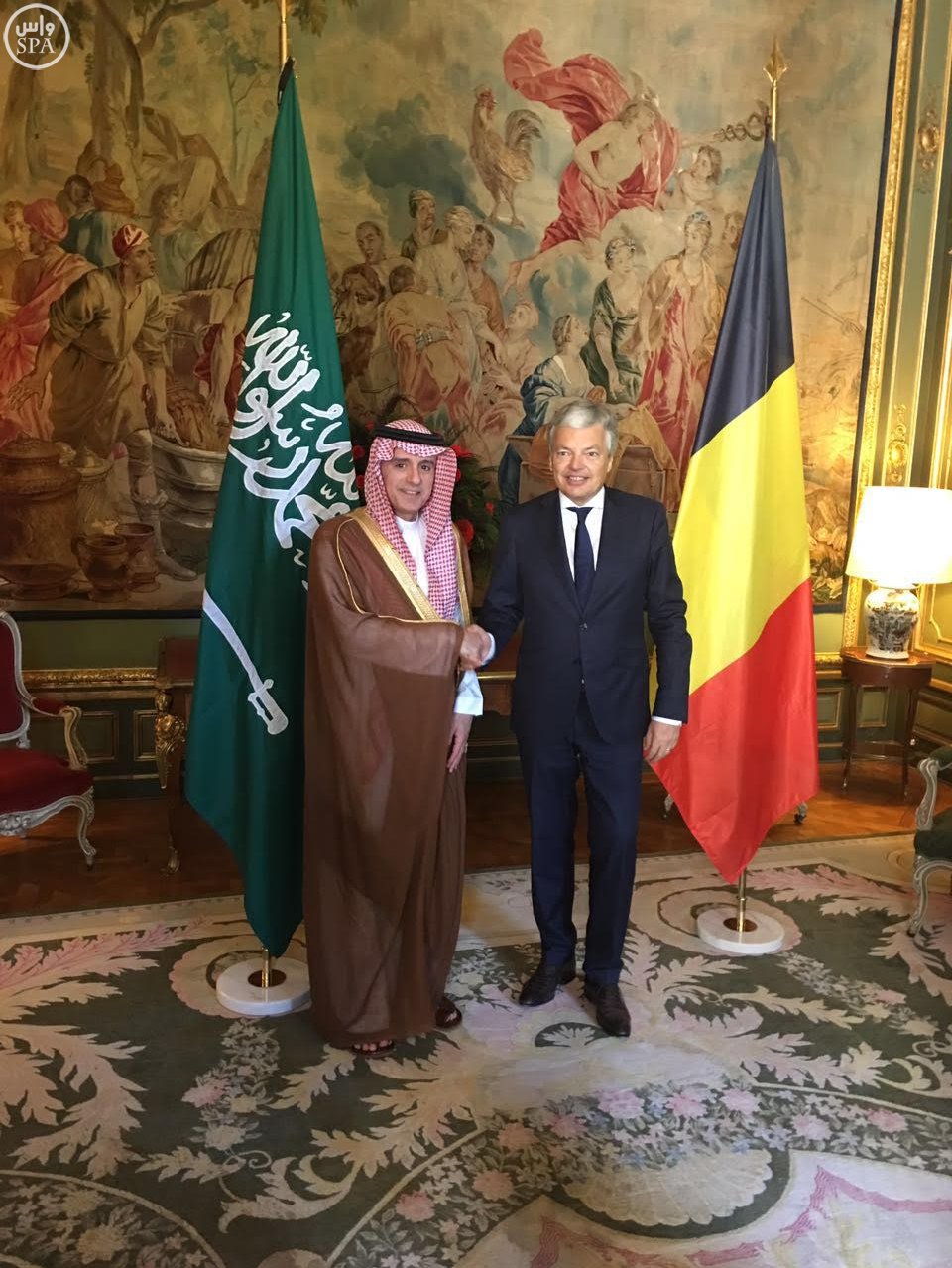 استقبل وزير خارجية مملكة بلجيكا ديديه ريندرز، في مقر وزارة الخارجية البلجيكية، اليوم، وزير الخارجية عادل بن أحمد الجبير.