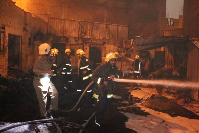 بالصور .. السيطرة على حريق مخزن للإسفنج بمكة