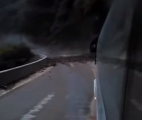 تداول نشطاء مواقع التواصل الاجتماعي مقطع فيديو لسائق لاحظ انهيار صخري بسيط أسفل جبل أثناء قيادة حافلة على الطريق بجنوب غرب الصين، فقرر التوقف ومشاهدة ماذا سيحدث.