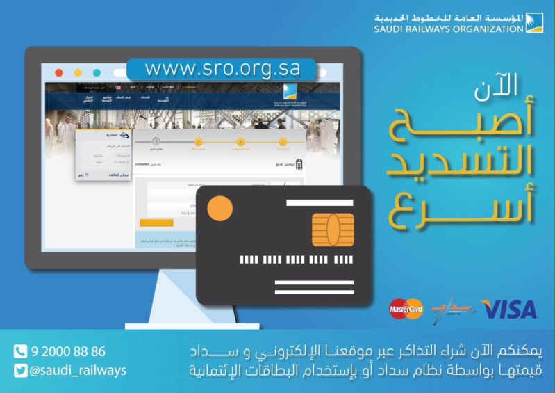 أعلنت المؤسسة العامة للخطوط الحديدية، مساء اليوم، عن تدشينها خدمة جديدة للتسهيل على عملائها سداد قيمة التذاكر، بعد إجراء الحجز عبر موقعها على الإنترنت.