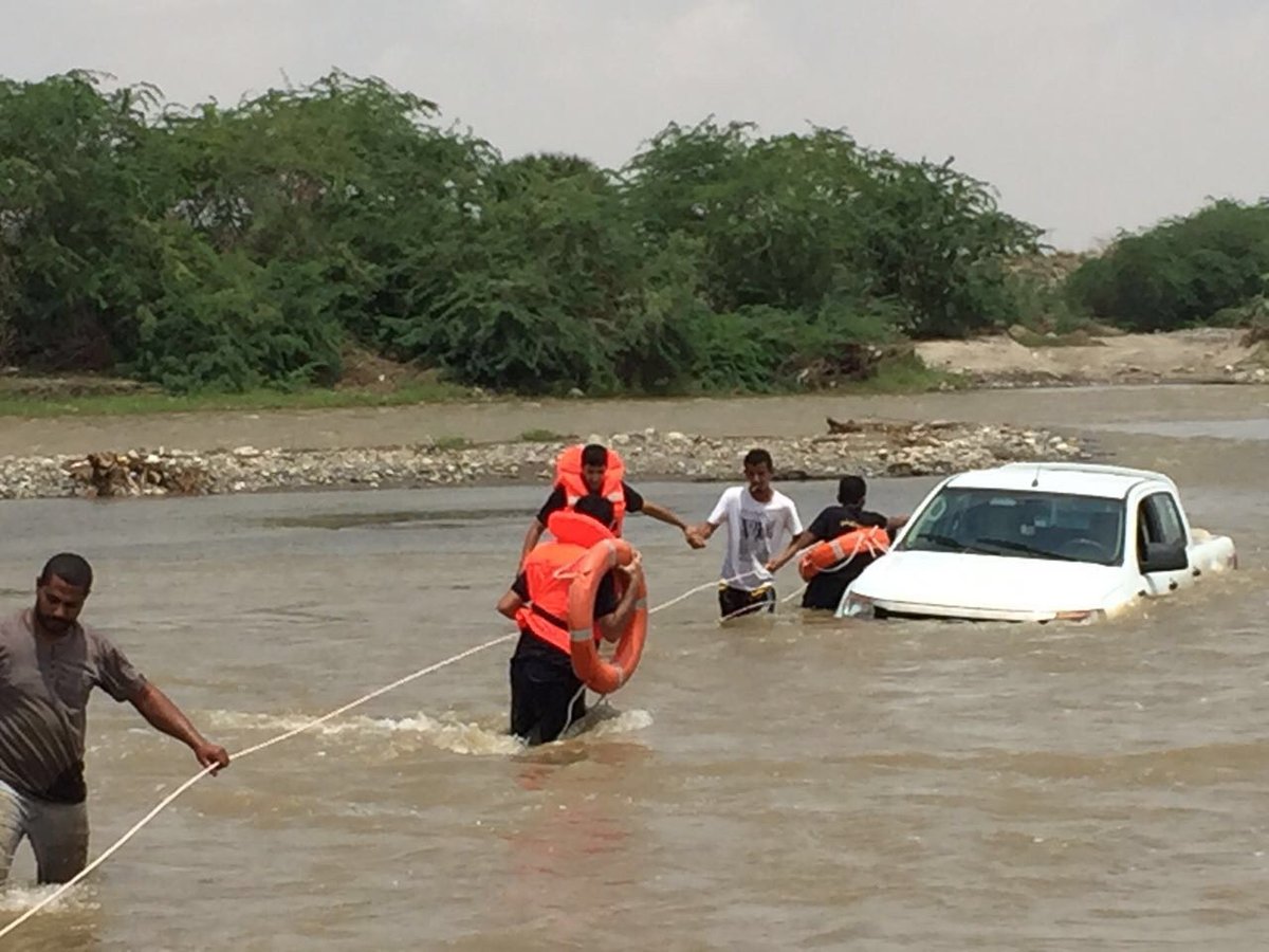 وتم إخراج المركبة والأشخاص، وهم بصحة جيدة، ولله الحمد.