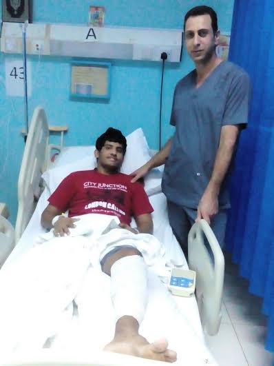 نجح فريق طبي بمستشفى أحد المسارحة العام، في إنهاء معاناة شاب من المقاومة اليمنية، بعد أن استمرت هذه المعاناة قرابة اﻷربعة أشهر؛ جراء إصابته في مواجهة سابقة للمقاومة اليمنية ضد مليشيات الحوثي وصالح؛ حيث أصيب بتفتت في الجزء العلوي من الساق ونقص في الجلد وجزء من العضلات بمعدل 7 سم و8 ملم والتهاب في الجرح والعظم وعدوى تلوث وكان ينتظر نقله لأحد المراكز المتقدمة لإجراء العملية.