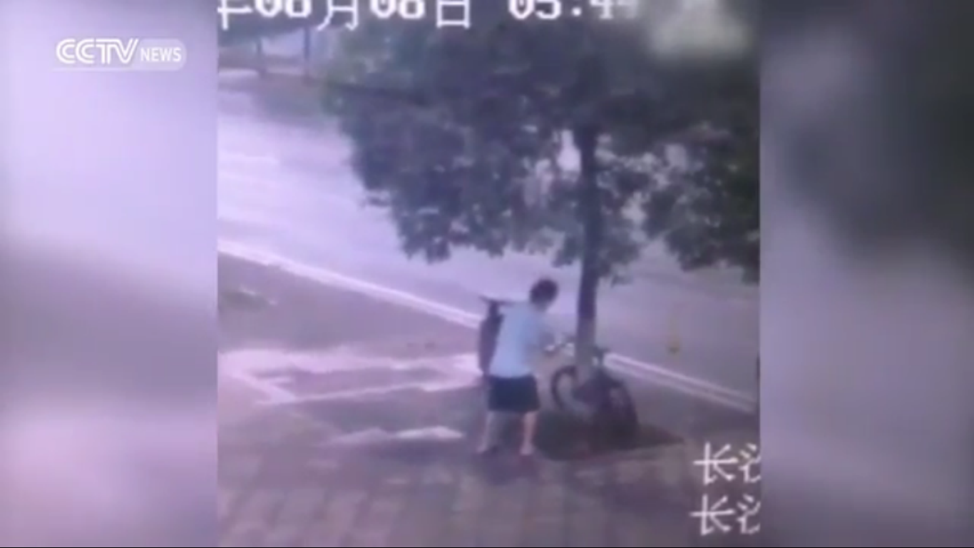 في فعلٍ غريبٍ، قطع لصٌّ صيني شجرةً على أحد أرصفة مدينة تشانغشا وسط الصين حتى يستطيع سرقة دراجة كانت مربوطة بجذعها.