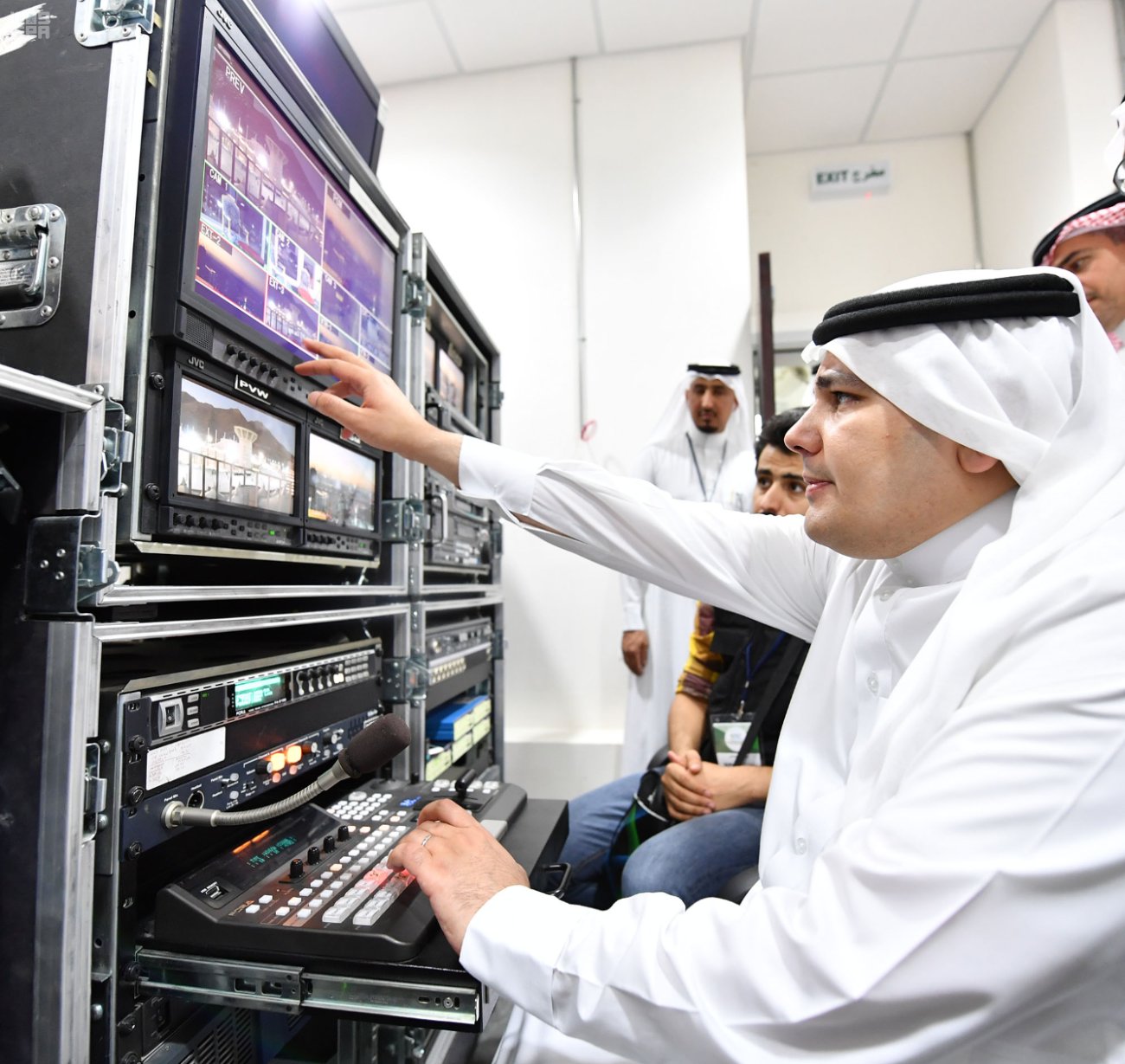 عقب ذلك زار معالي الوزير استديو القناة الإخبارية وشاهد ما يحتويه من تجهيزات حديثة.
